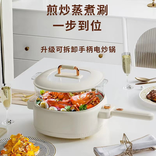 4、電炒鍋用途多,可勝任煎、炒、炸、煮、蒸、燉等多種烹調(diào)方法。
